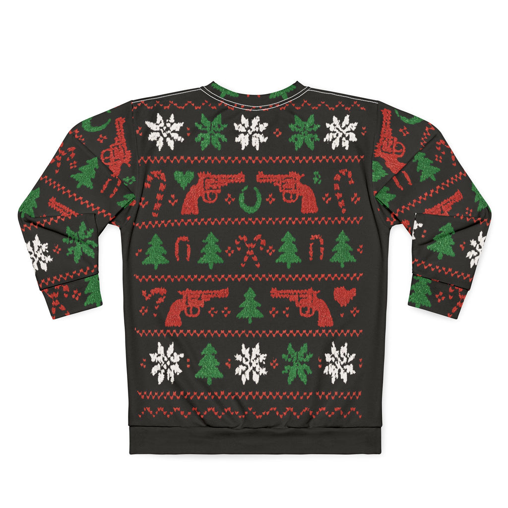 This unisex sweatshirt features a black santa ugly Christmas sweater design, perfect for adding a festive touch to your holiday wardrobe. The bright and intense colors cover the entire sweatshirt, giving it a fun and playful vibe. Ideal for anyone looking to stand out during the holiday season and spread some Christmas cheer. Made with 100% polyester medium weight fabric, this sweatshirt is durable, retains its shape, and dries quickly. The ribbed-knit cuffs and collar provide a comfortable fit, while the crew neck and classic fit offer a relaxed and cozy feel. Custom cut and sewn in the USA from globally sourced parts. Product features - Black santa ugly Christmas sweater design - 100% Polyester medium weight fabric - Ribbed-knit cuffs and collar for comfort - Crew neck and classic fit - Custom cut and sewn in the USA Care instructions - Do not dryclean - Do not iron - Tumble dry: low heat - Do not bleach - Machine wash: cold (max 30C or 90F)